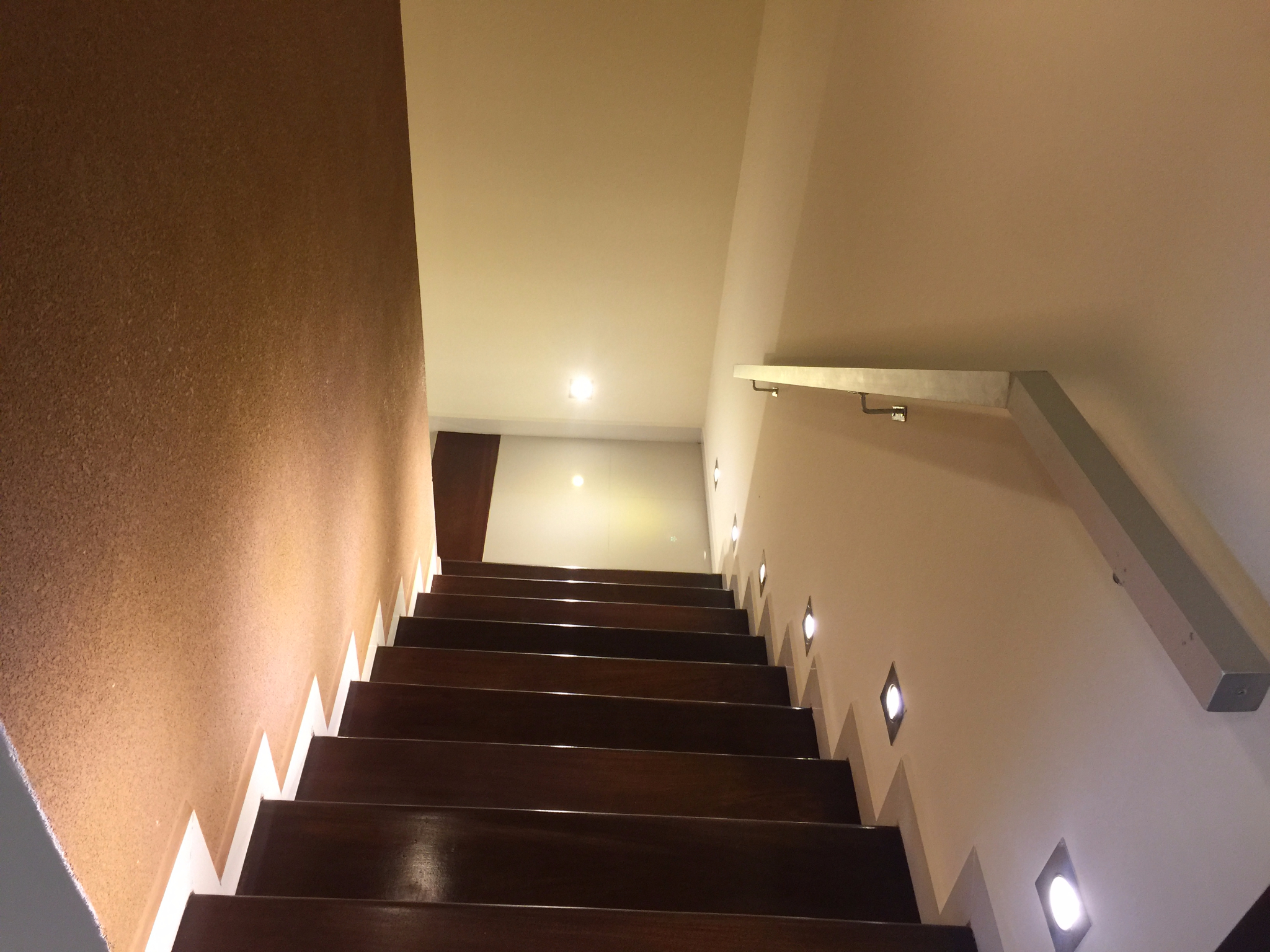 - ESCALERAS: Revestidas de madera de tajibo y diseño moderno con iluminación.